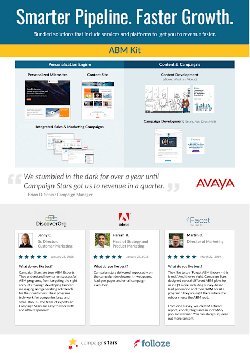 Build reliable ABM pipeline with turn-key programs from the experts at Campaign Stars that move fast, hit hard, and generate millions in ABM revenue.